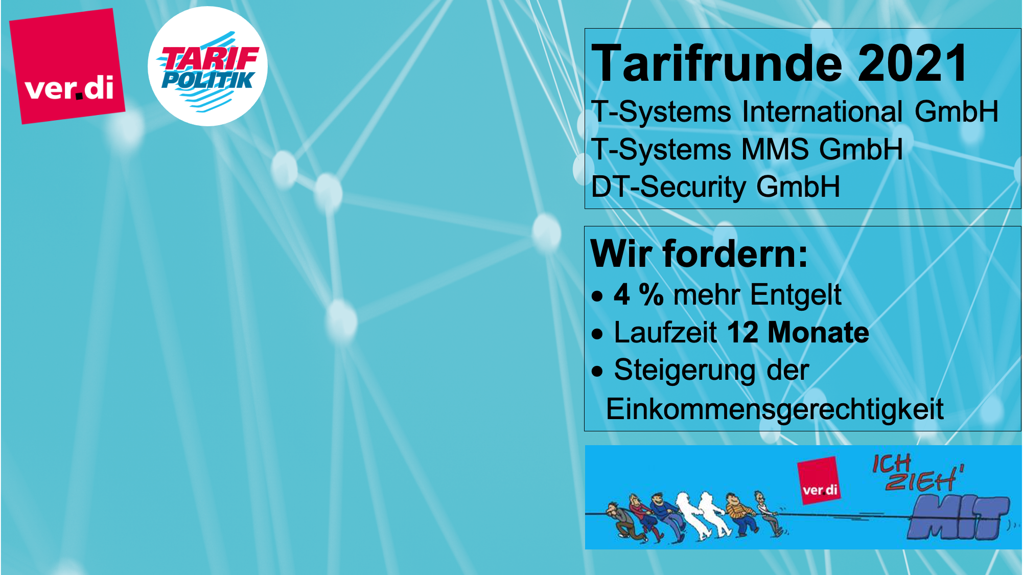 Wichtig ist zu zeigen, wer ver.di in der T-Systems, der T-Systems MMS und in der DT Security ist und wer die Forderungen stellt.