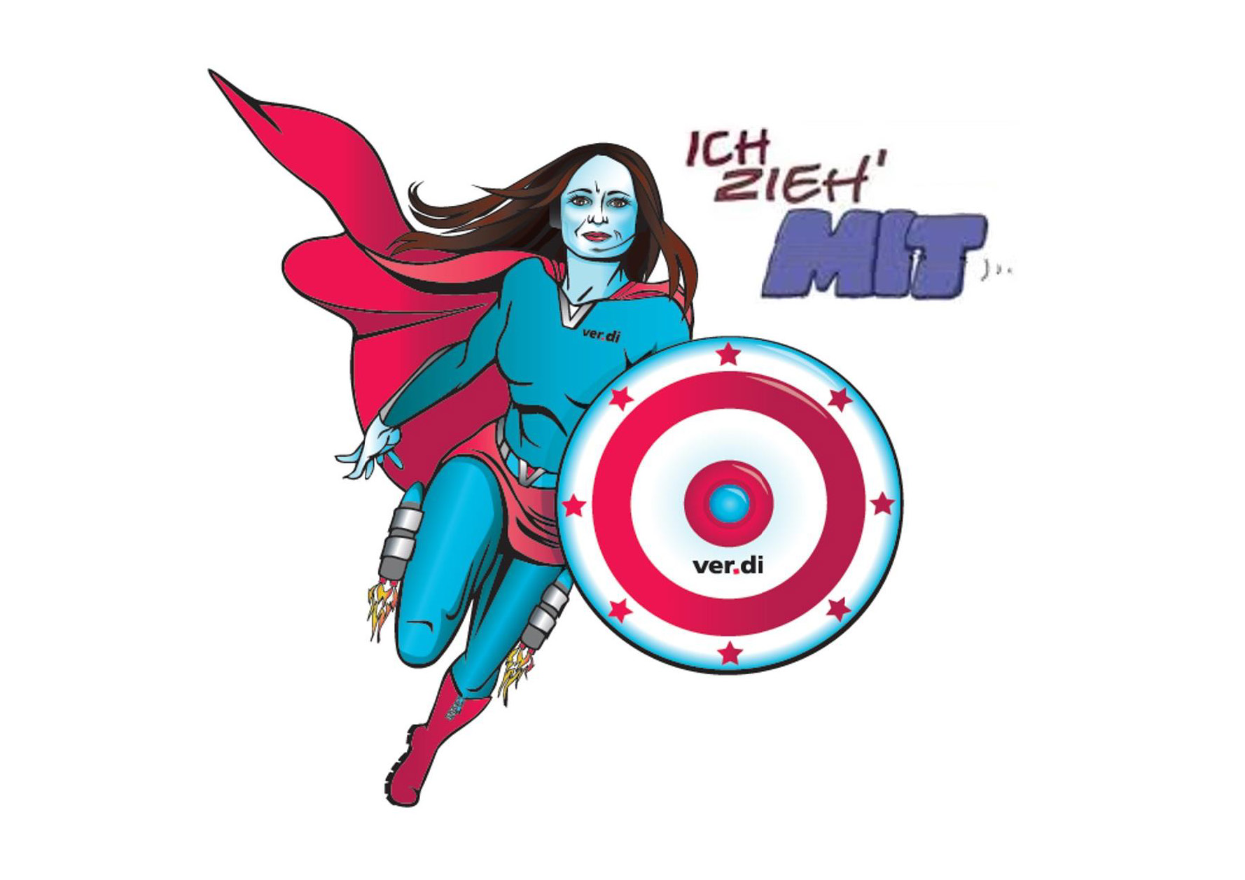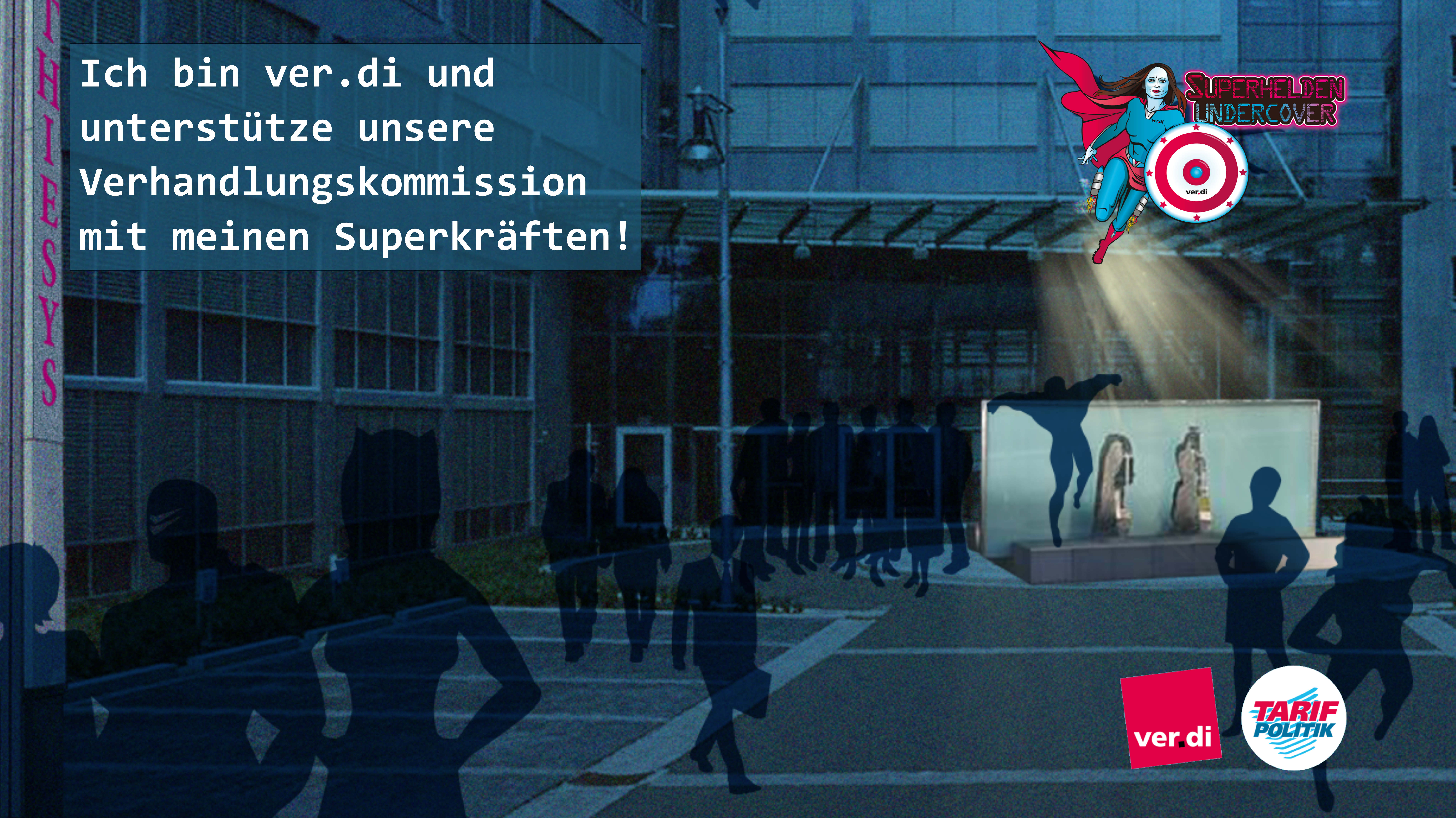 "ver.di ist das Kryptonite aller wahren Superheldinnen. Warum? Nirgends sonst als da wo ver.di auftaucht gibt es faire Arbeitsbedingungen, gleiches Geld für gleiche Arbeit und Mitbestimmung, die eine friedliche Betriebsgesellschaft verwirklicht. Den Zauber des Kryptonits kann nur erleben, sich ver.di einlässt."