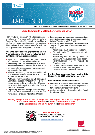 Einladung zur 15 Minuten-Info anlässlich der Tarifrunde T-Systems, MMS & DT Sec am 15.03.2021 von 12:00 - 12:15 Uhr
